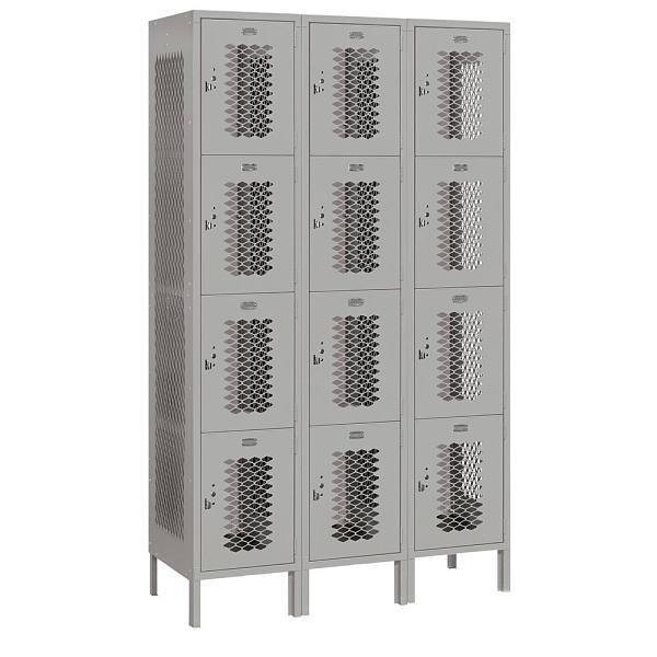 • Salsbury 15" Wide Four Tier Vented Metal Locker - 3 Wide - 6 Feet High - 18 Inches Deep - Gray - Unassembled
